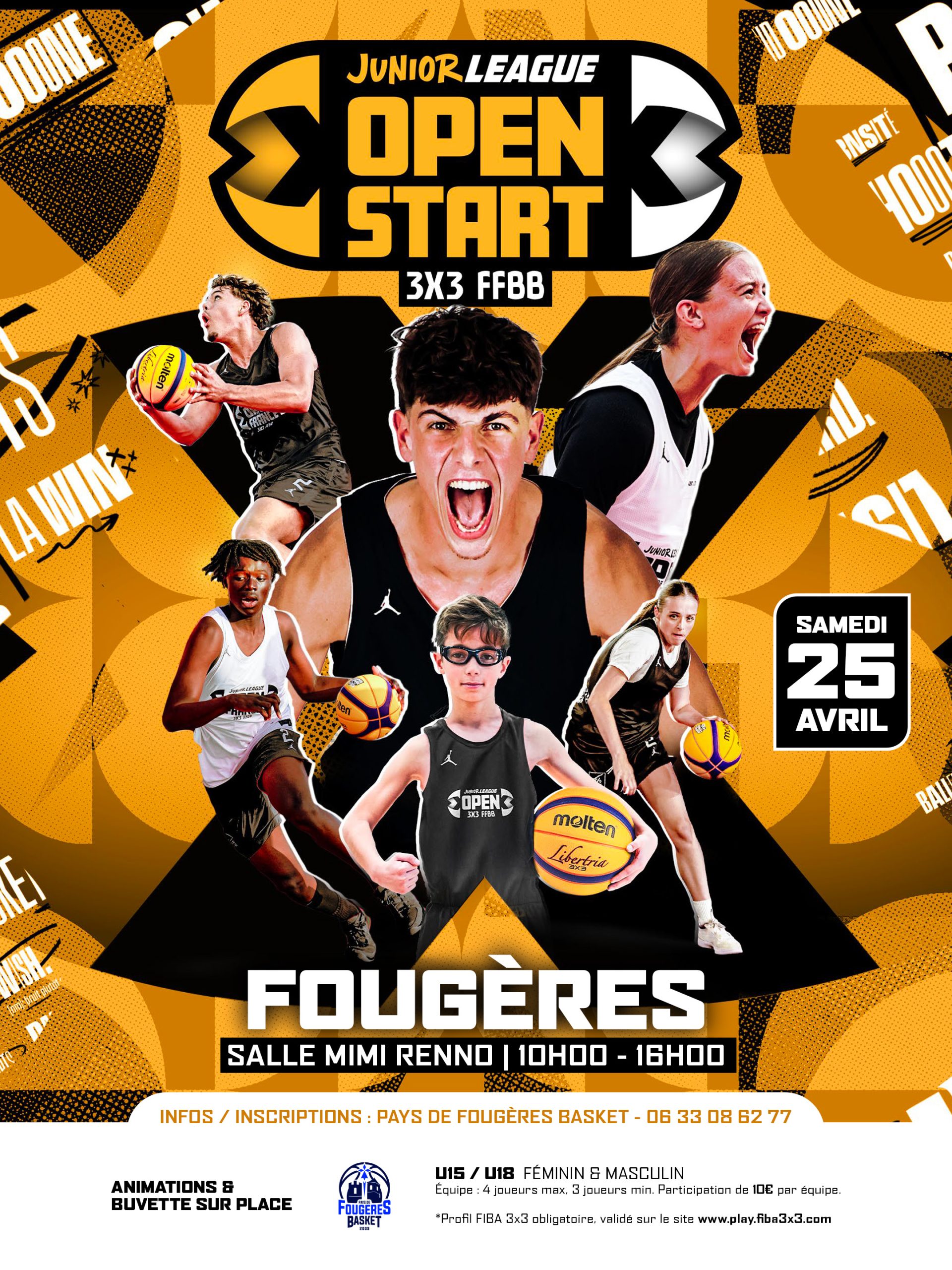 Tournoi 3×3 homologué FFBB organisé par le Pays de Fougères Basket à la salle Mimi Renno de Fougères.